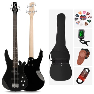 - Perfect Accessories- Come with 1x electric bass guitar, 1x portable guitar bag, 1×Shoulder Strap, 1×Bass pick, 1×Amp Cord,1×Tuner. You can play bass immediately after opening a package.
