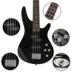 Electric Bass Guitar 4 Strings Full Size P Bass Beginner Kit Black for Starter with Gig Bag, Guitar Strap, and Guitar Cable (Black)