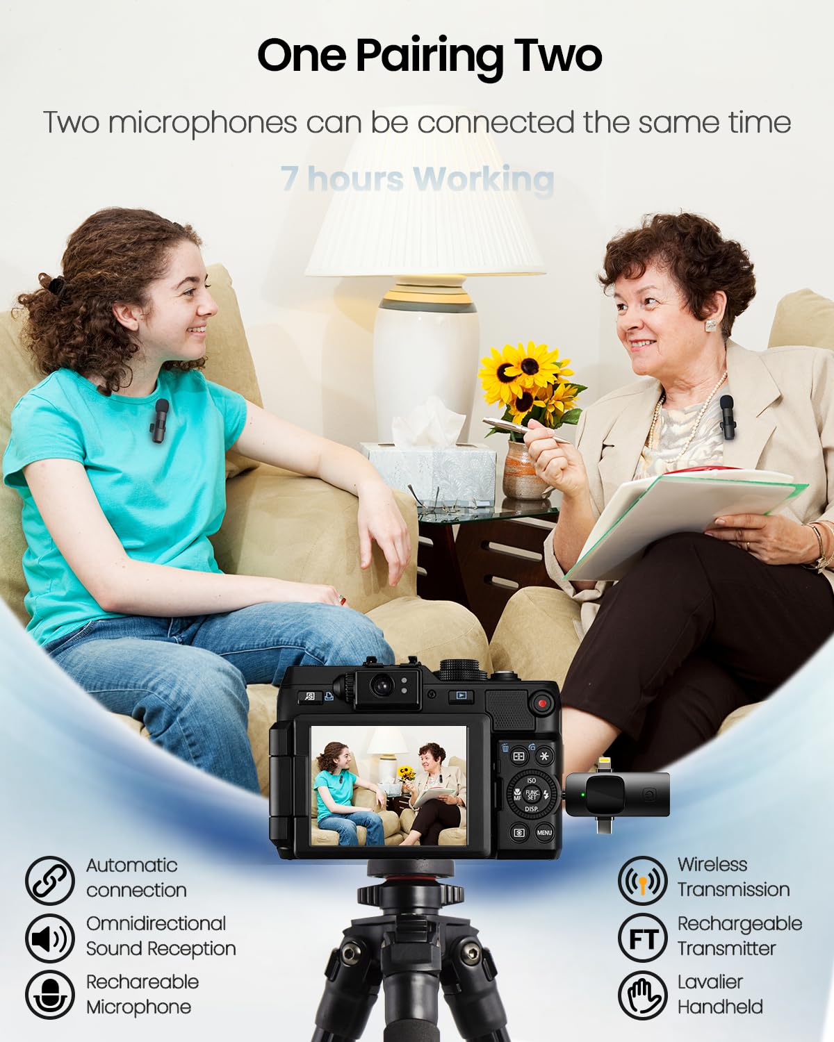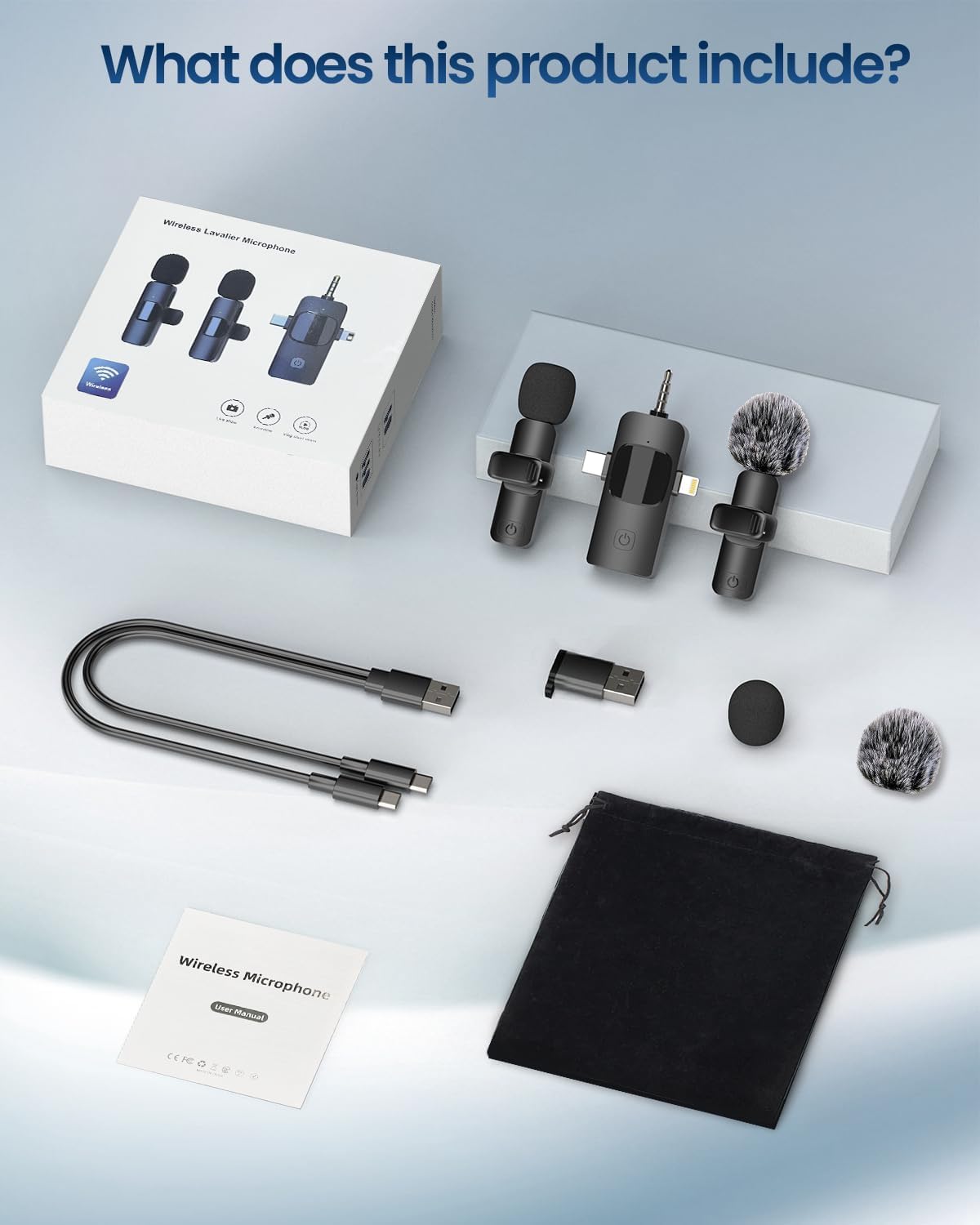 - [Compatibility]: The upgraded wireless microphone comes with a 4 in 1 universal receiver, eliminating the need to replace multiple individual interfaces or interface cables. Compatible with android smartphones, iphone(including iPhone 15), iPad, laptops, personal computers, camera etc. Such as Type-C Android phones (some phones require OTG to be enabled) and USB-C port laptops/tablets, but also compatible with iPhone 15 (USB C).