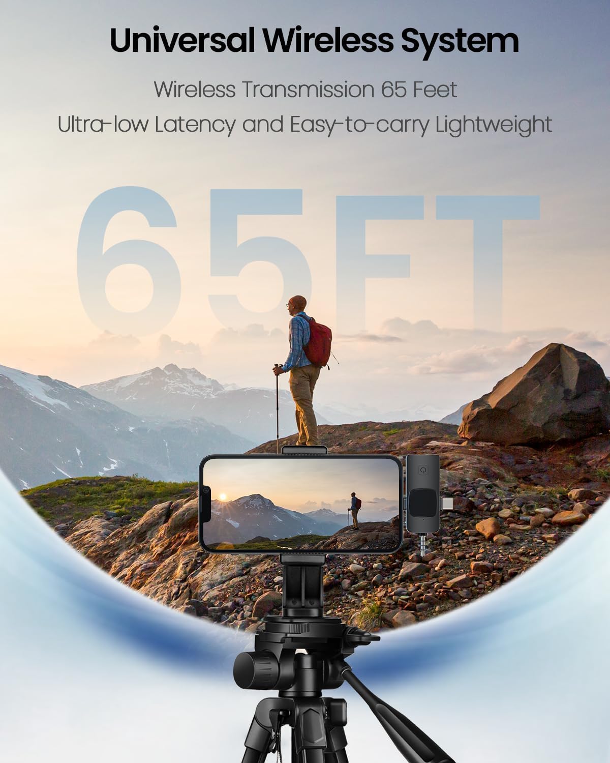 - [Long-Range Wireless Tranmission]: Wireless microphone is completely cable-free, delivering a stable audio signal up to 65 feet. You can hold it by hand or clip it on your shirt. With type-C charging cable, the receiver and the phone can be charged at the same time.