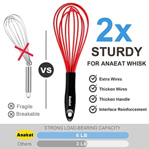- 【BRAND QUALITY GUARANTEE】QUALITY CAN SPEAK ITSELF. ANAEAT focuses on kitchenware research and development. We are so confident that we have the best silicone whisk on the market. If you have any problems with ANAEAT products, feel free to send us a message by Amazon and we resend to you right away for free, or full money back. We are very concerned about every order, and try our best to Provide our customers with HEALTHY & DURABLE kitchen accessories.