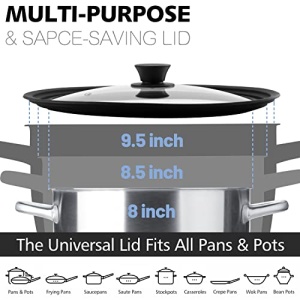 Details: ANAEAT Silicone Universal Lid for Pots, Pans and Skillets – Tempered Glass Covered with Heat Resistant Silicone Rim Fits 8″, 8.5″ and 9.5″ Diameter Cookware -Easy to Use Replacement Frying Pan Cover