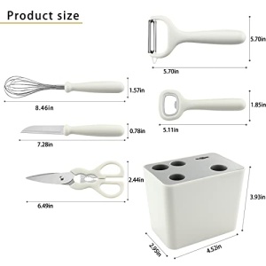 COMUSTER Kitchen Gadgets Set,Kitchen Scissors, Kitchen Utensils Set with Holder, Paring Knife,Whisk,Bottle Opener,Peeler- Home Kitchen Gadgets(White 6 Pieces set)