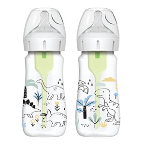 Dr. Brown’s Natural Flow® Anti-Colic Options+™ Wide-Neck Baby Bottle Designer Edition Bottles, Dino Decos, 9oz/270mL, Level 1 Nipple, 2-Pack, 0m+