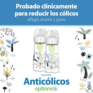 Details: Your options have never been better with Dr. Brown’s Natural Flow® Anti-Colic Options+™ Wide-Neck Baby Bottle. The anti-colic internal vent system is clinically proven to reduce colic. Dr. Brown’s® bottles provide a more comfortable feeding experience for baby by decreasing spit-up, burping and gas. This vacuum-free feeding is closest to breastfeeding and Dr. Brown’s® silicone nipples provide a consistent flow so baby can feed at their own pace. The breast-like nipple shape encourages a proper latch for a more natural bottle feeding experience and eases the transition from breast to bottle and back again. Dr. Brown’s vent system is proven to help preserve bottle milk nutrients and aids in digestion for a better night’s sleep. The silicone nipple, together with the internal vent system, offer a reliable and trusted bottle feeding experience that makes Dr. Brown’s the #1 Pediatrician Recommended Baby Bottle in the U.S.* Made to grow with baby, our bottle is designed to nourish through all of baby’s feeding stages and is recyclable. Safe for use in dishwasher (top rack only), electric and microwave sterilizers or boiling water. BPA Free. *IQVIA Health ProVoice Survey 2021