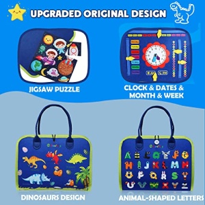 - 🎁️PERFECT GIFT FOR KIDS – This Montessori busy board is uniquely designed with dinosaurs elements and 26 kinds of animal-shaped English letters to appeal to any child. It is a perfect gift for 1-6 years old toddlers as Birthday, Carnival Prize, Christmas, Halloween, Thanksgiving, Contest prizes. Surprise your kids with our amazing busy board.