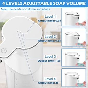 - AUTO TOUCHLESS – Josnown automatic liquid soap dispenser adopts precise infrared motion and PIR sensor detection technology. Just put your hand under the sensor port at 0-7cm(2.75”), and it will quickly dispense soap within 0.25s, providing 4 levels of liquid output.