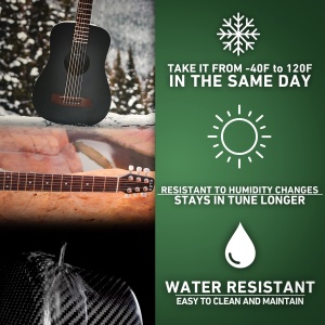 - CARBON FIBER and DURABLE: Take your guitar on your next trip, whether it’s camping, hiking or traveling to a place you’ve never been with this travel-sized guitar made out of durable carbon fiber, composite material that will not warp or crack over time unlike wood instruments. Carbon fiber has a very high strength to weight ratio, which means it’s tough, resonant, and resistant to temperature and humidity changes.