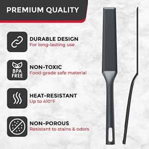 - Heat Resistant – The nylon spatula is durable, flexible, non-stick and heat resistant up to 410 degrees F. You can safely use it to lift baked cookies from trays, or eggs from frying pans.