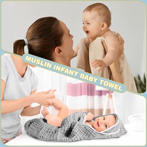 - Soft Absorbent Material: these muslin towels for baby are made of quality cotton material, breathable and absorbent, with a hood design to keep the baby’s body and head warm, machine washable and quick dry, very convenient for easy clean up, keep its softness, thickness and color even after many washes, can serve you for a long time