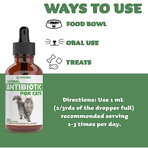 - ALL NATURAL ALTERNATIVE TO CHEMICAL ANTIBIOTICS: the newest and improved formula! No artificial additives! Just our Antibiotic for Cats – in liquid form!
