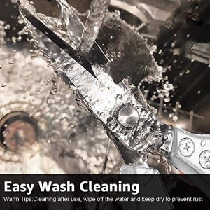 - ✄Handle Every Cutting Task with Ease -Use your Heavy-duty Butcher Shears they’ll get whatever job you need done:snipping herbs, cutting parchment, spatchcocking chickens, opening annoying clamshell packages containing new kitchen tools, and more.Besides,you will get a free herb scissors to help your dedicate cooking task. Order a pair or two of these multipurpose sharp kitchen scissors today!