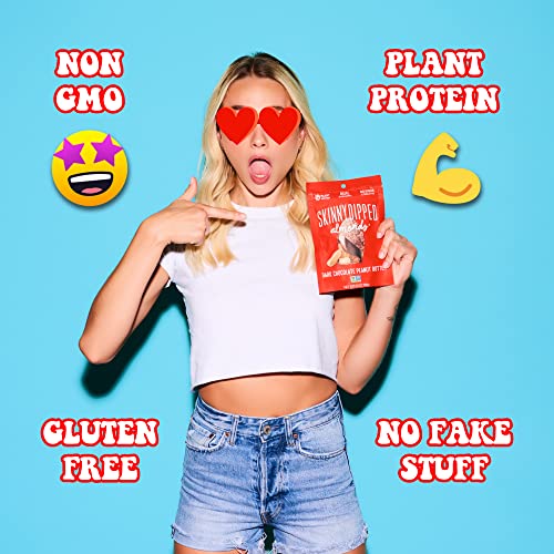 SkinnyDipped Dark Chocolate Peanut Butter Almonds, Healthy Snack, Plant Protein, Gluten Free, 0.46 oz Mini Bags, Pack of 24