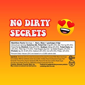 - NO BAD STUFF: We only use steam pasteurized almonds and non-GMO ingredients you can legit pronounce. We’re also gluten free and Kosher. No artificial colors, flavors, sweeteners or sugar alternatives…ever.