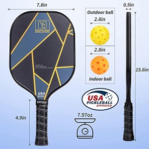 • 【Cost-effective suit】USAPA Pickleball Approved, If you buy our Pickleball Paddle Set, you will get 2 rackets, 4 balls, 1 storage bag. Save all your purchases on the field in one go, saving your shopping time. Every YC DGYCASI pickleball paddle is designed to be an awesome pickleball paddle for either a beginner or a professional player.